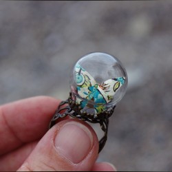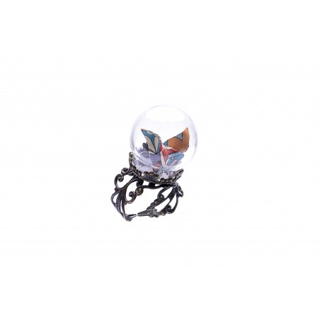 Adjustable ring with glass bowl. Inside, a miniature butterfly in origami, symbol of freedom and trasformation. Hypoallergenic bronze and nickel free.