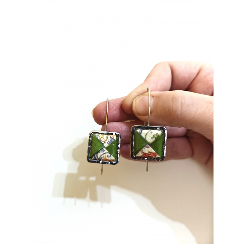 Orecchini con cornice in acciaio anallergico e menko origami in vari colori