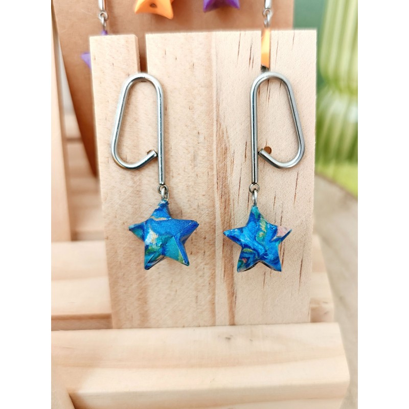 allegri e colorati orecchini con stelline in origami singole o doppie.