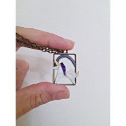 Collanina in bronzo con unicorno origami e arcobaleno di carta.