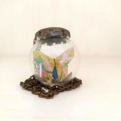 Collana con catena in bronzo e ciondolo con boccia in vetro; all'interno una miniatura di farfalla in origami simbolo di libertà e trasformazione.